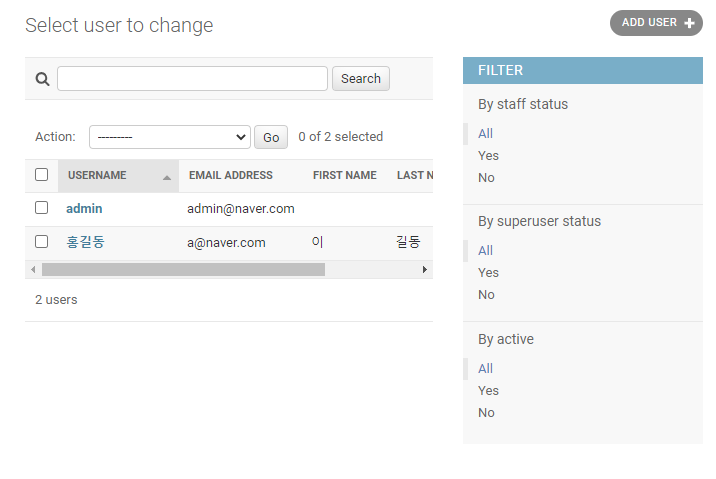 다시 /admin으로 가면 생성됨을 확인할 수 있다.