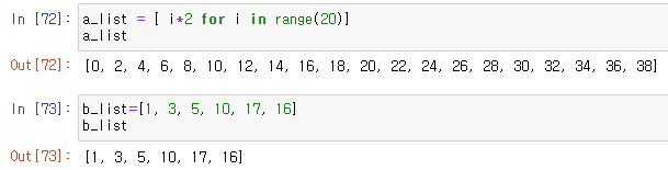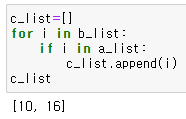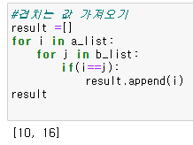 문제 ) a_list에 있는 값과 b_list에 있는 값들 중 겹치는 값을 출력해보자