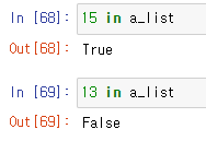사진처럼 in 을 이용해 내가 찾고 싶은 값이 있으면 True, 없으면 False를 반환한다.