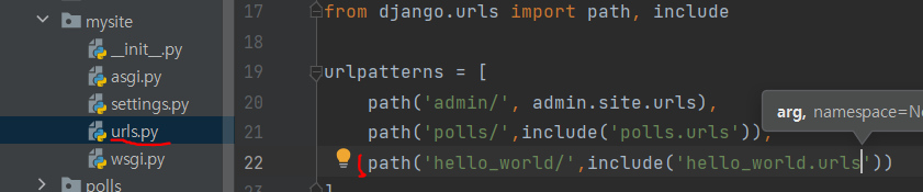 hello_world로 들어오면 include로 hello_world앱에 밑에있는 urls.py를 찾는다는 뜻이다.