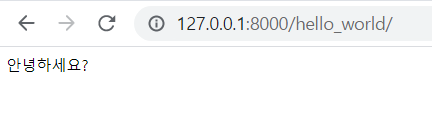 브라우저가 뜨자마자 이 화면이 뜨는데 /hello_world/를 붙여주면 된다!