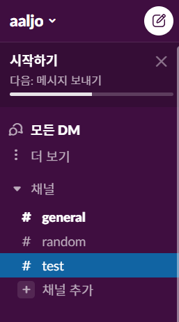 아 그리고 나는 test라는 채널을 추가했다.