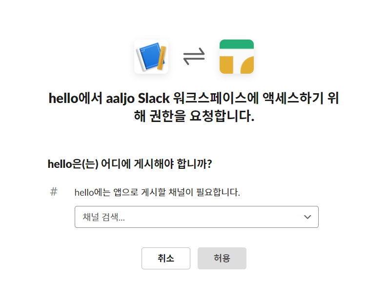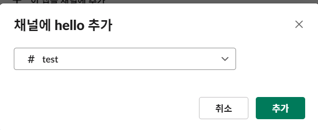 이 앱을 채널에 추가 를 눌러 원하는 채널에 초대해준다.
