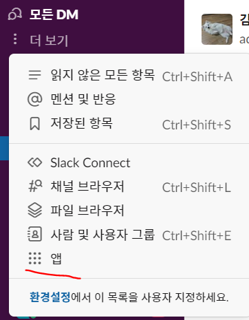 슬랙에 들어가 왼쪽 편을 봐보자