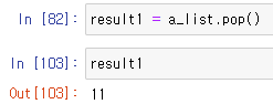 여기서 pop()를 이용하면 끝에있는 값을 가져온다.