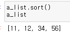 a_list는 [12, 56, 11, 34] 배열을 가지고 있다 sort()를 적용하면