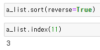sort를 reverse로 하여 반대로 정렬하고 난 후 11의 값이 3번째에 있다는 것을 알려준다.