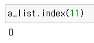 오름차순한 a_list에서 11은 0번째에 있으므로 0이 떴고