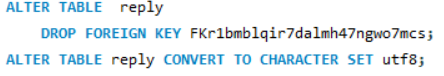ALTER TABLE (테이블 이름) CONVERT TO CHARACTER SET utf8;