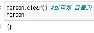person.clear() #빈객체 만들기