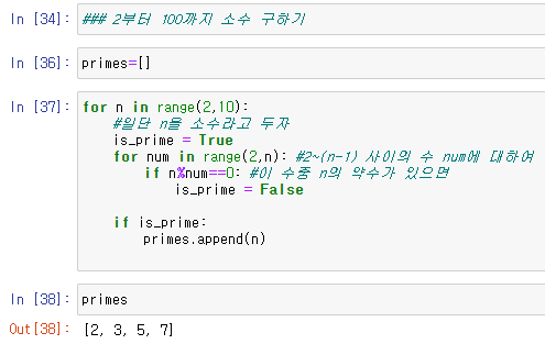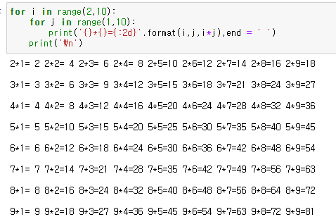 | [Python/파이썬] 주피터 노트북에서 for 문 예제(구구단, 소수), while문으로 누적 합 구하기 (0) | 2021.05.31 |