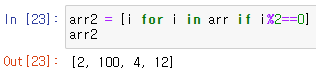 arr2 = [i for i in arr if i%2==0]